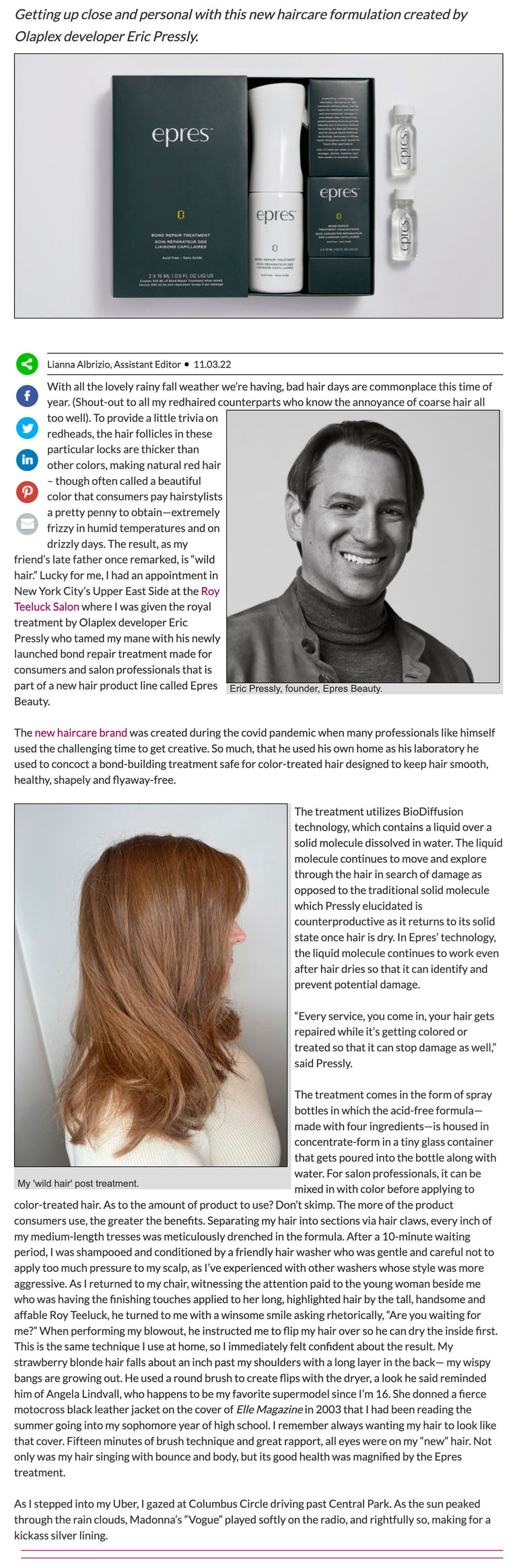 "New Bond Repair Treatment by Epres Beauty: Editor's Experience" by LIANNA ALBRIZIO