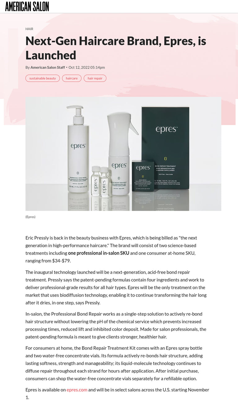 "Next-Gen Haircare Brand, Epres, is Launched" by American Salon Staff