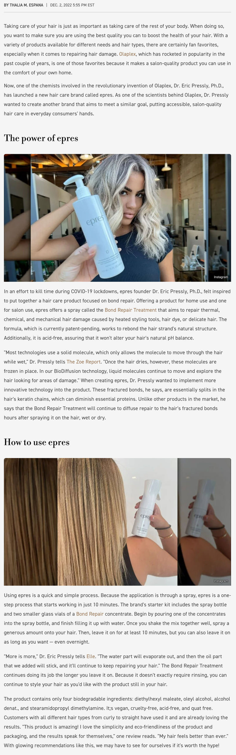 "What To Know About The Buzzy New Haircare Brand Epres" by THALIA M. ESPANA